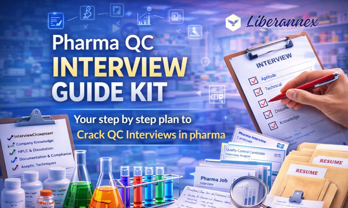The QC Pharma Interview Guide Kit for Freshers is a comprehensive preparation toolkit designed to help students, graduates, and entry-level professionals crack interviews for Quality Control positions in the pharmaceutical industry. It combines theoretical knowledge, practical insights, interview questions & answers, instrument know-how, and regulatory understanding to give learners an edge over other candidates. This kit serves as both a self-study material and a quick revision resource before interviews. It bridges the gap between academic knowledge and industry expectations, ensuring candidates are well-prepared to face technical and HR interview rounds confidently.
